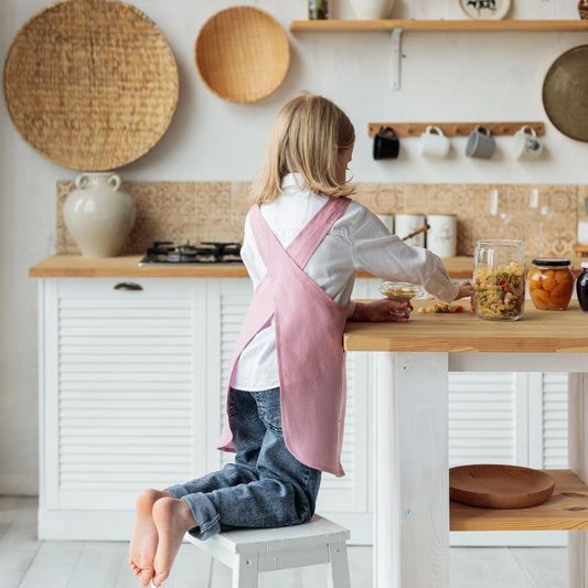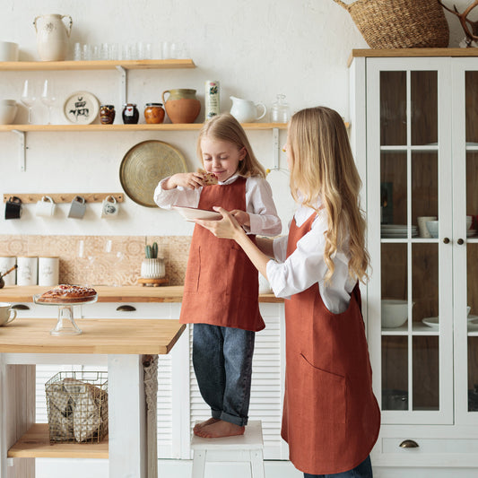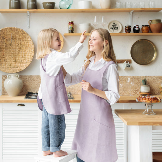 You can order a linen kitchen apron for a girl, woman or little housewife in the kitchen. Our online store offers several styles: