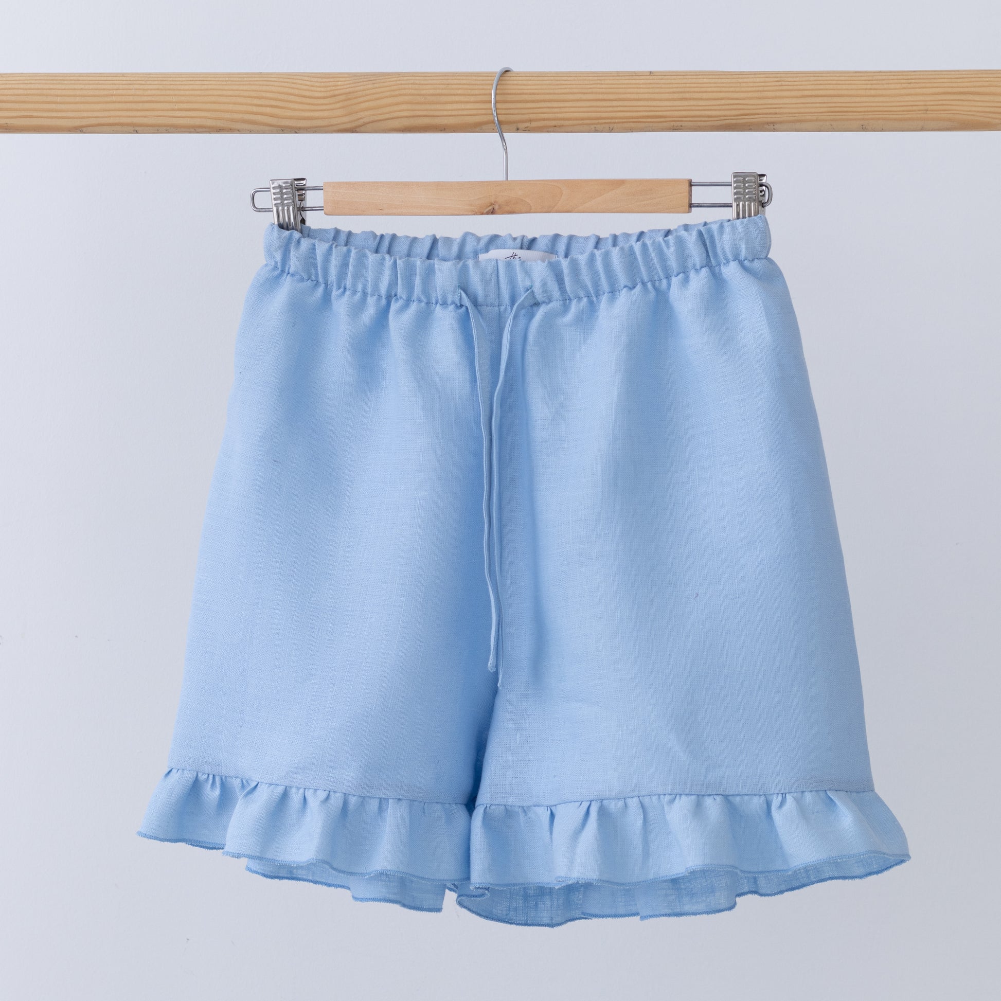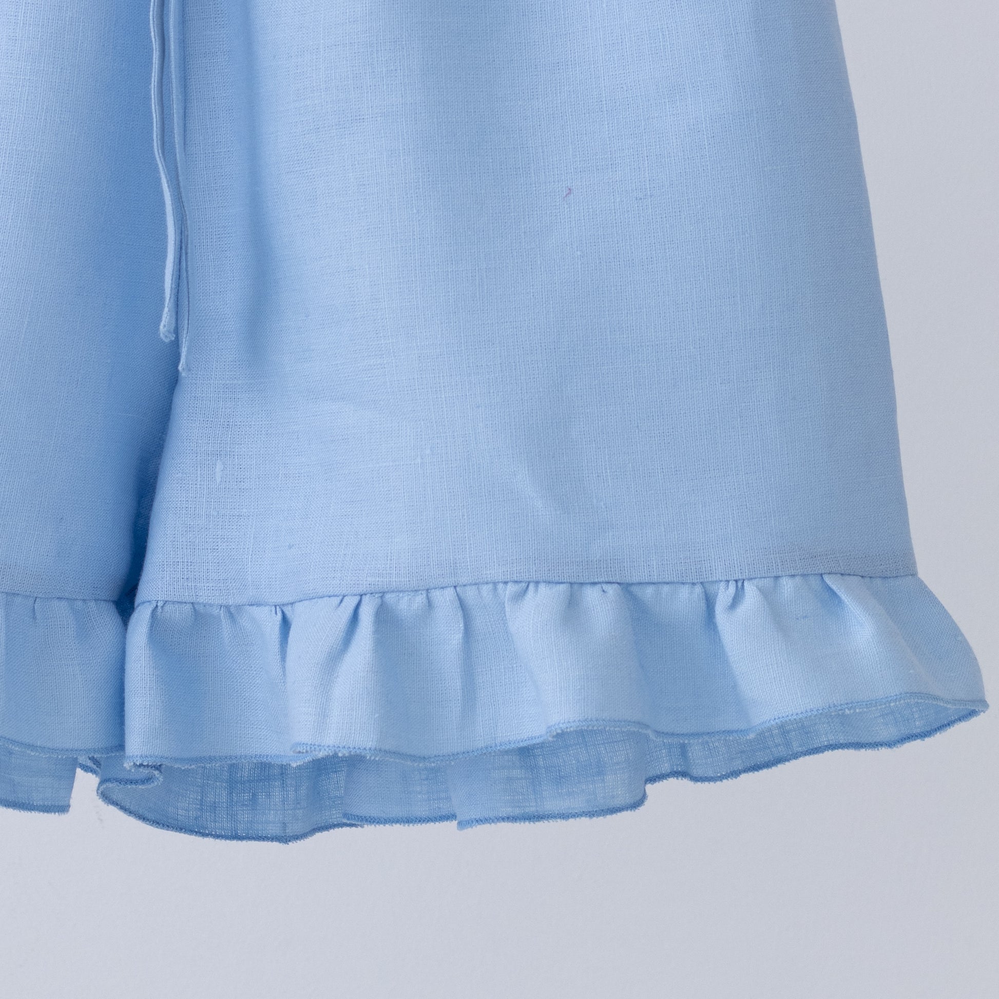 Linen shorts with ruffle insert in blue skies